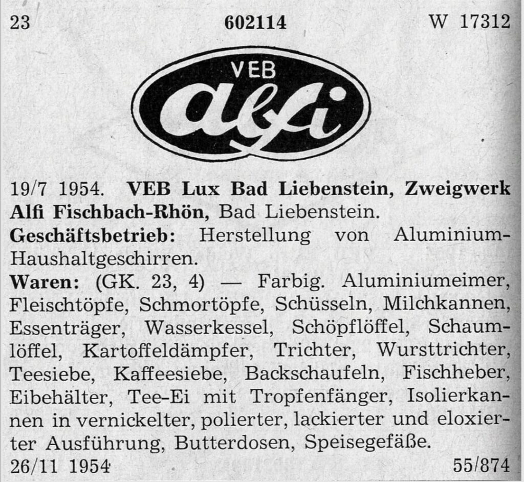 VEB Aluminiumwarenfabrik Fischbach (Alfi- Werk)