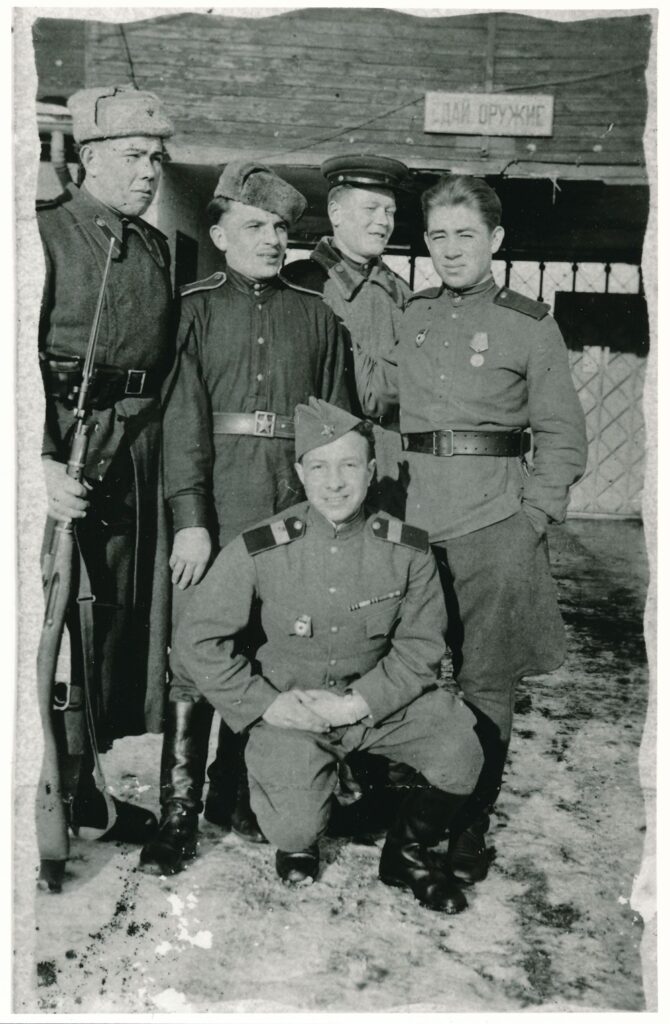 Bild: Angehörige der sowjetischen Wachmannschaft im Speziallager Nr. 2, 1946 (über dem Tor steht: „Waffen abgeben“), Privatbesitz, Gedenkstätte Buchenwald